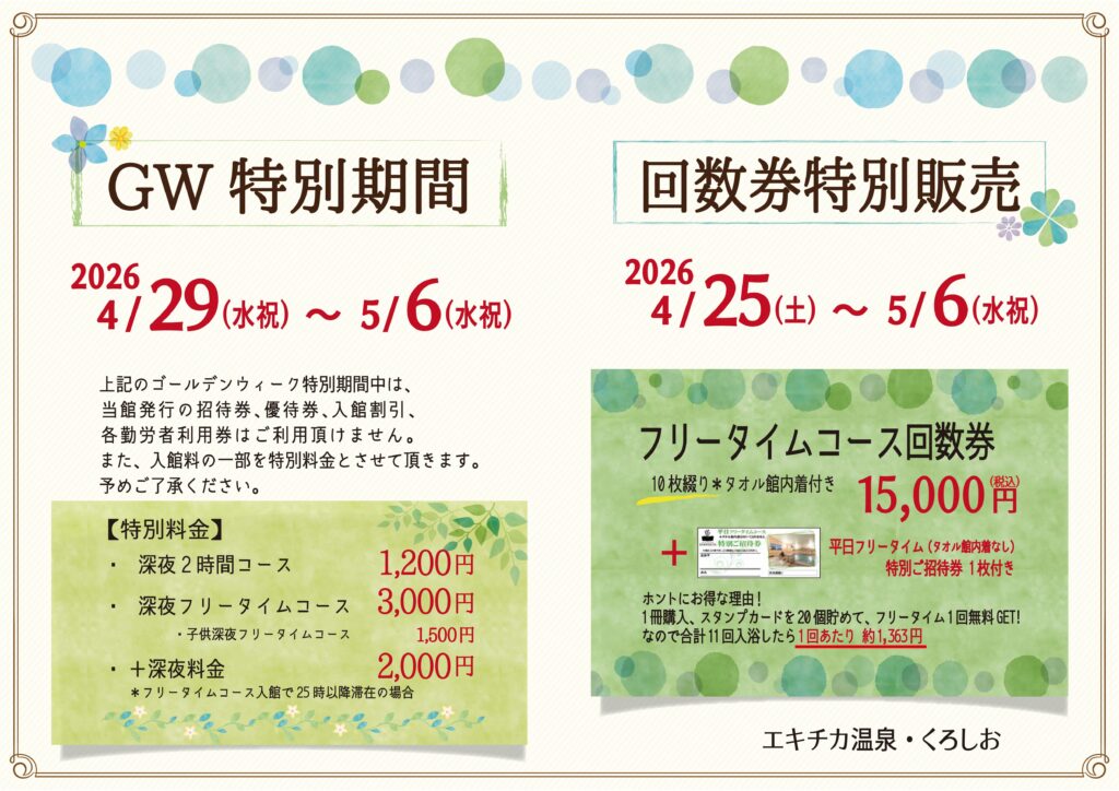 GW特別期間、回数券特別販売のお知らせ